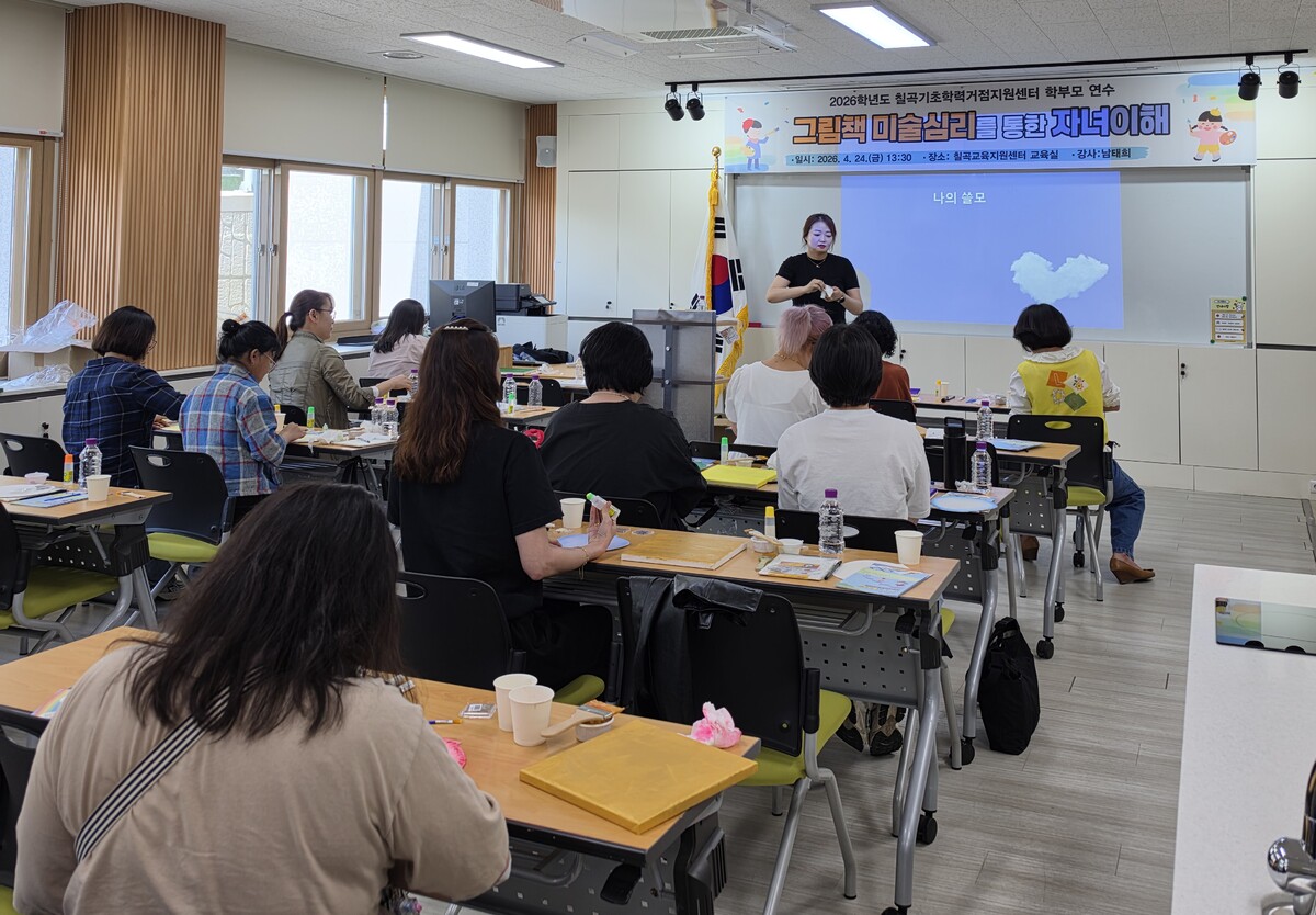 경북 칠곡교육지원청(교육장 김진화) 기초학력거점지원센터는 최근, 칠곡교육지원센터 1층 교육실에서 칠곡·성주·고령 지역 학부모 40명을 대상으로 ‘그림책 미술 심리를 통한 자녀 이해’ 학부모 연수를 개최했다고 밝혔다.