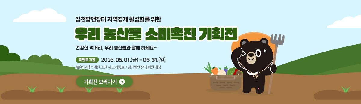 이와 함께 ‘지역경제 활성화를 위한 우리 농산물 소비촉진 특별전’도 병행된다. 김천팜앤장터에 입점한 모든 상품을 대상으로 20% 할인 지원이 이뤄져, 소비자들은 김천의 우수 농특산물을 평소보다 훨씬 저렴한 가격에 식탁에 올릴 수 있게 됐다.