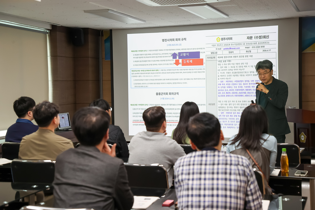 군의회는 지난 27일부터 28일까지 이틀간 의회 본회의장에서 ‘제10대 개원 준비 및 성공적인 의정활동 지원 방안’을 주제로 실무 교육을 했다고 29일 밝혔다. 이번 교육은 새롭게 출범할 차기 의회의 운영 기반을 체계적으로 다지고, 의원과 사무과 직원들의 실전 업무 역량을 극대화하기 위해 마련됐다.